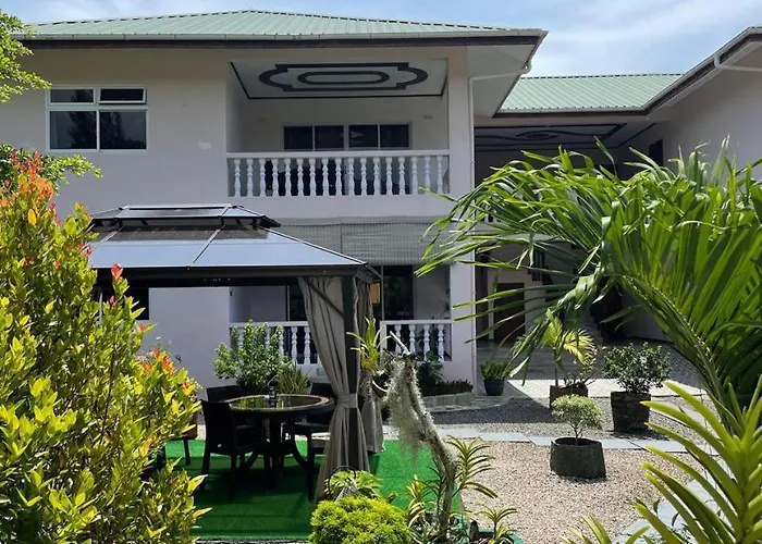 Diese Unterkunft verfügt über eine komplette Küche mit einer Mikrowelle, einem Wasserkocher und einem Kühlschrank. Zum Flughafen Mahe Island sind es nur 14 Minuten. Lassen Sie den Tag erholsam im Entspannungsbereich ausklingen und genießen Sie einen Innenhof, einen Flachbild-Sat-TV und einen Garten.